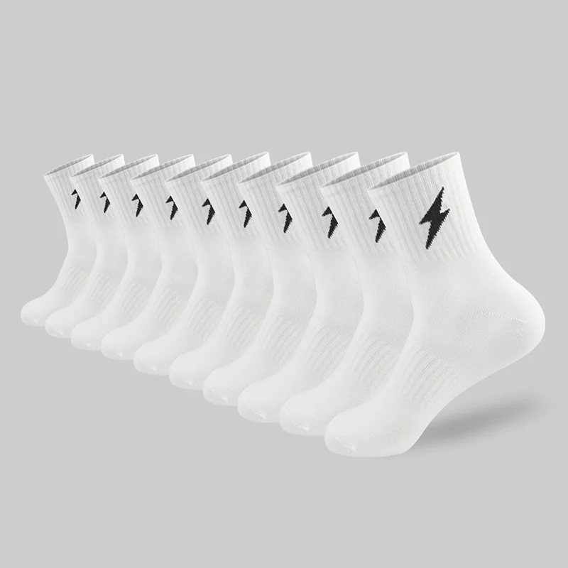 5 Pairs Men's Lightning Athletic Socks, Anti Odor & Moisture Wicking, Mid-Calf Running Socks, Sport Casual Socks for All Season