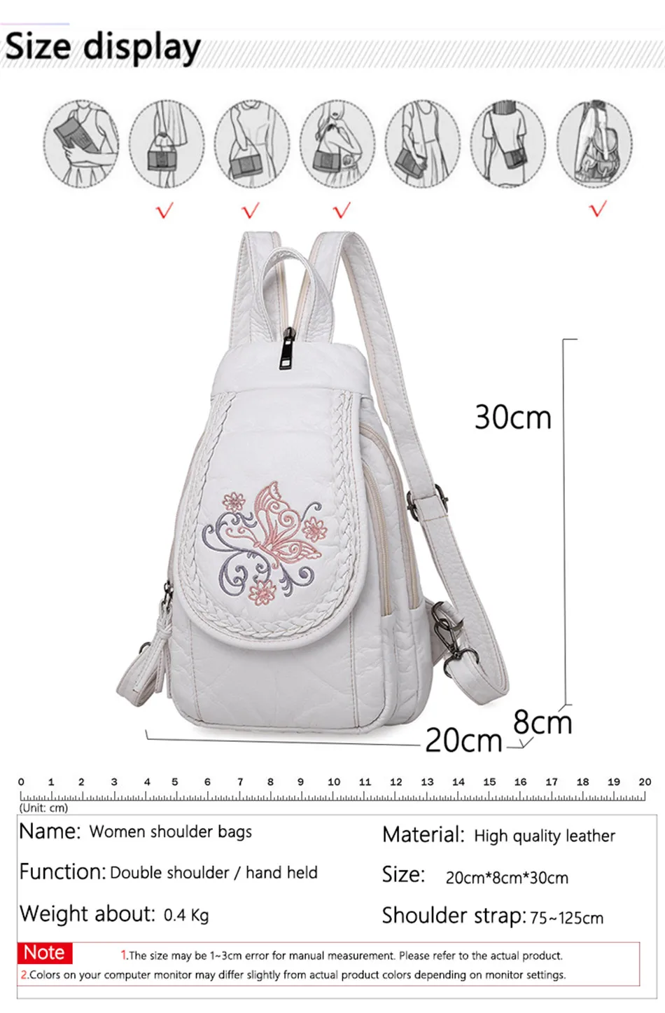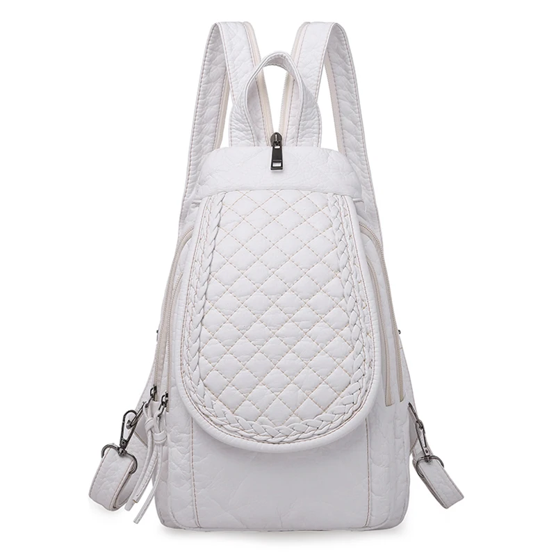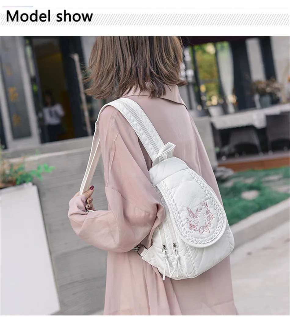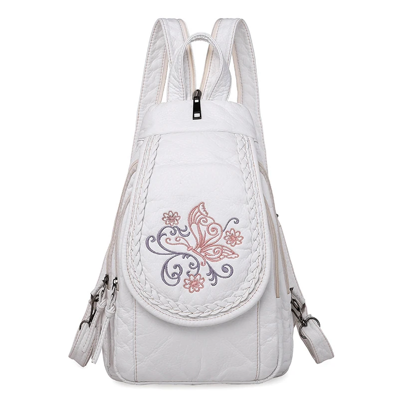 Embroidery Mini Backpacks Women's Backpack Cute Flower Pattern Wash PU Leather Ladies Backpack White Shoulder Bags for Girls SAC