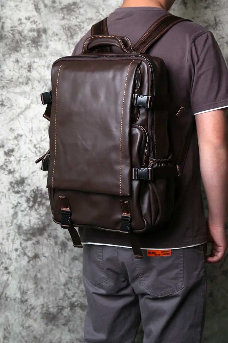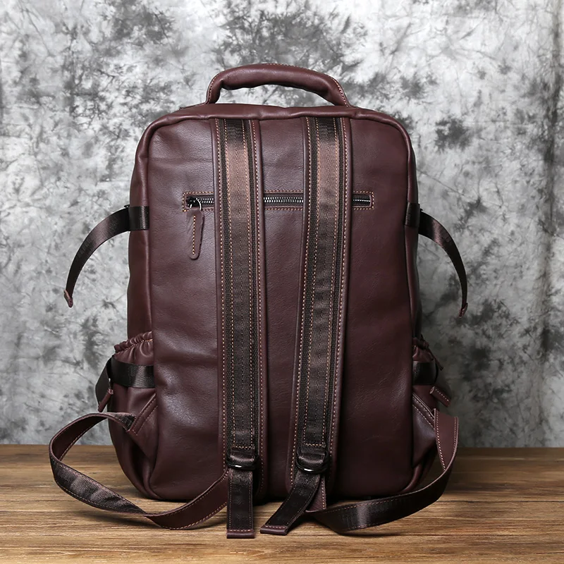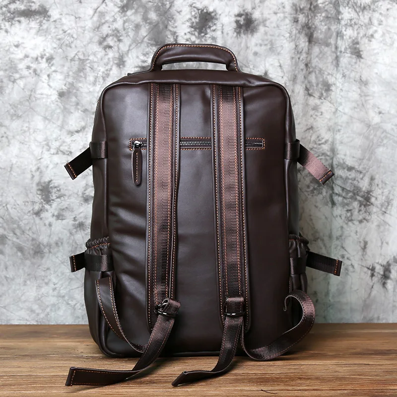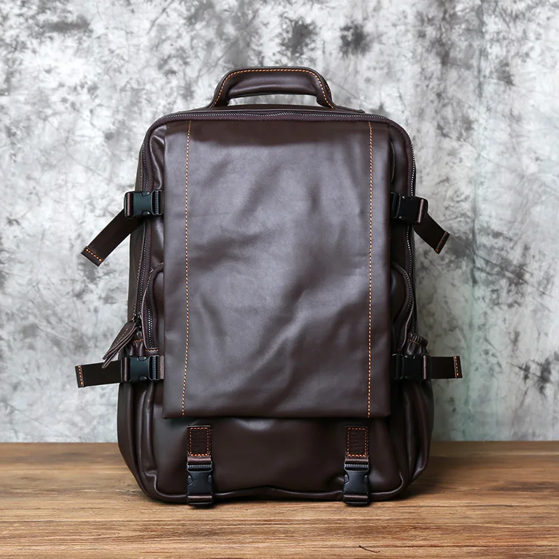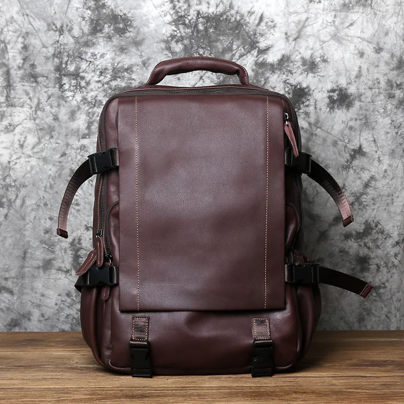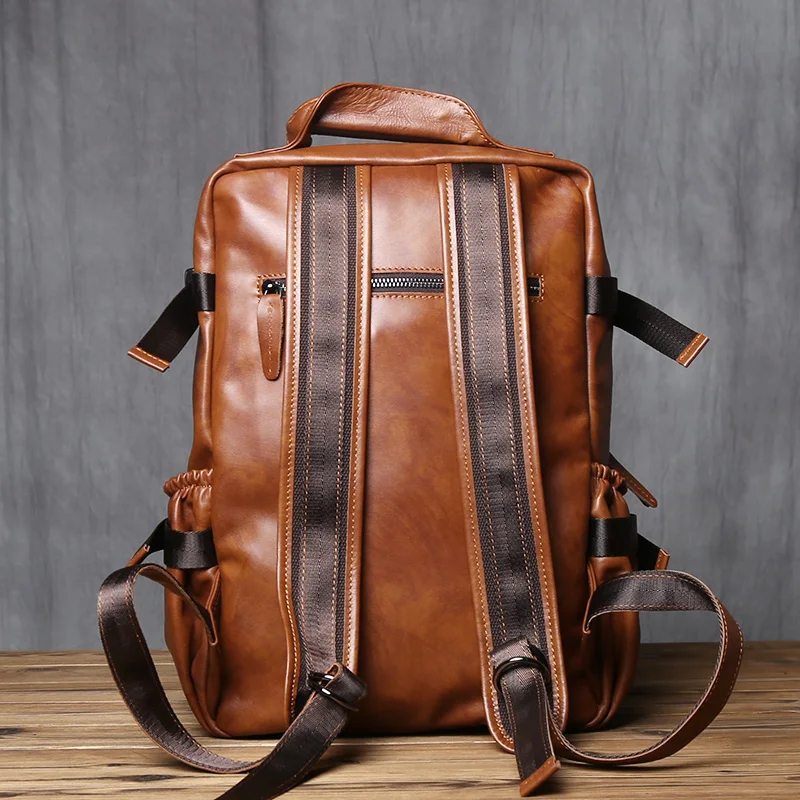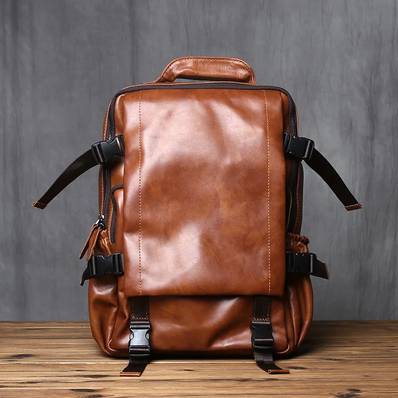 NZPJ Leather Men's Backpack First Layer Cowhide Leisure Business Travel Backpack Large Capacity Computer Bag Women's Schoolbag