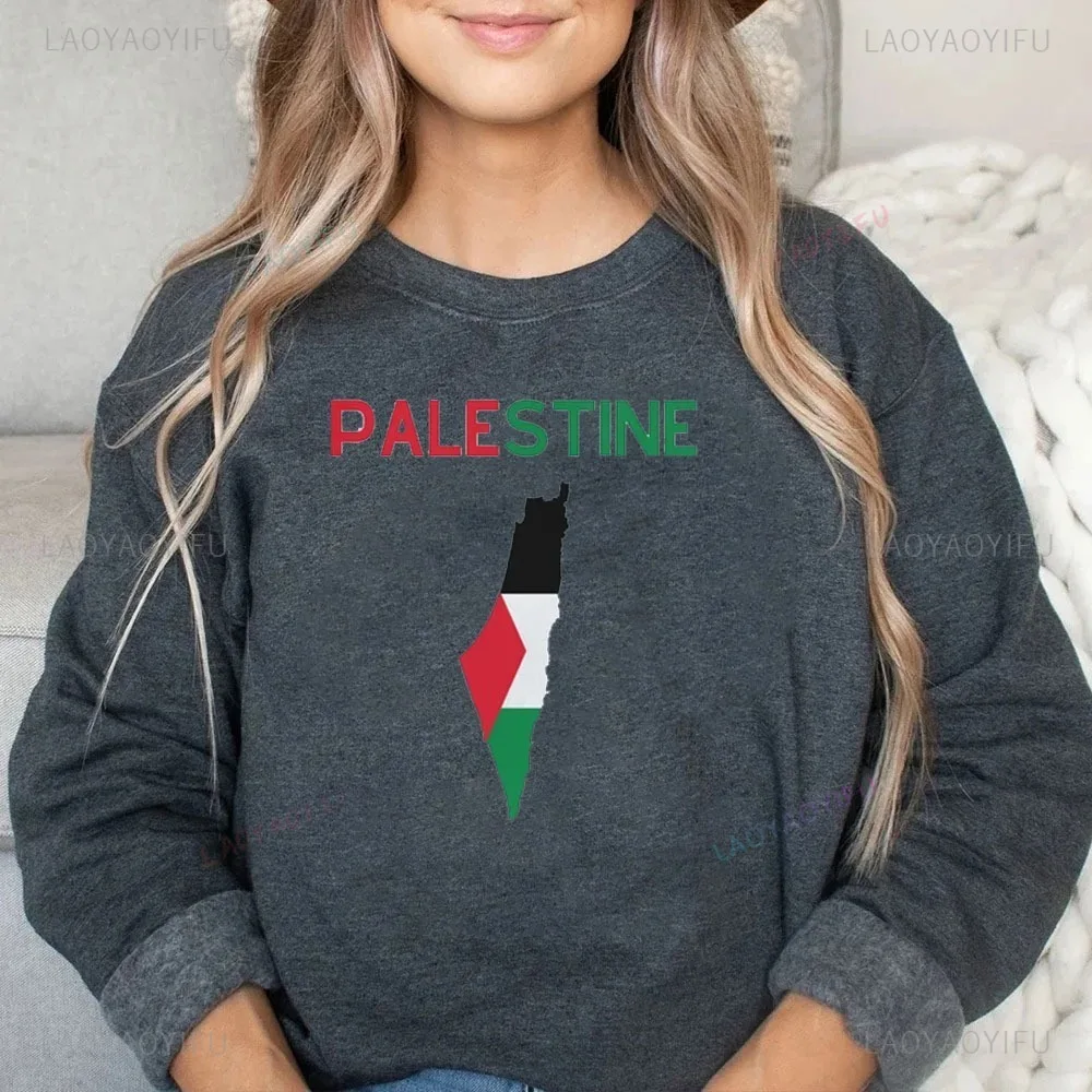 PALESTINE Sweatshirt Crew Neck Sweatshirt Flag and Map Flag Map Clothing Palestine Gift Palestine Clothing
