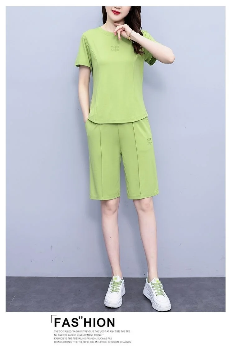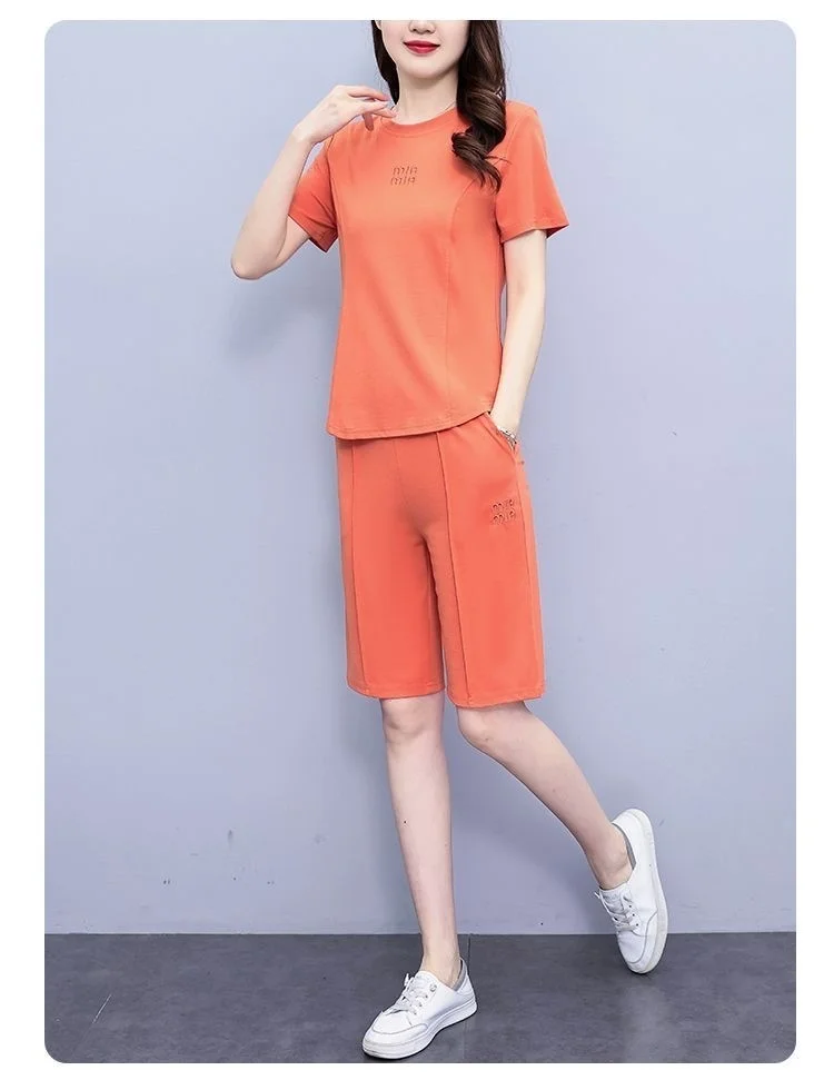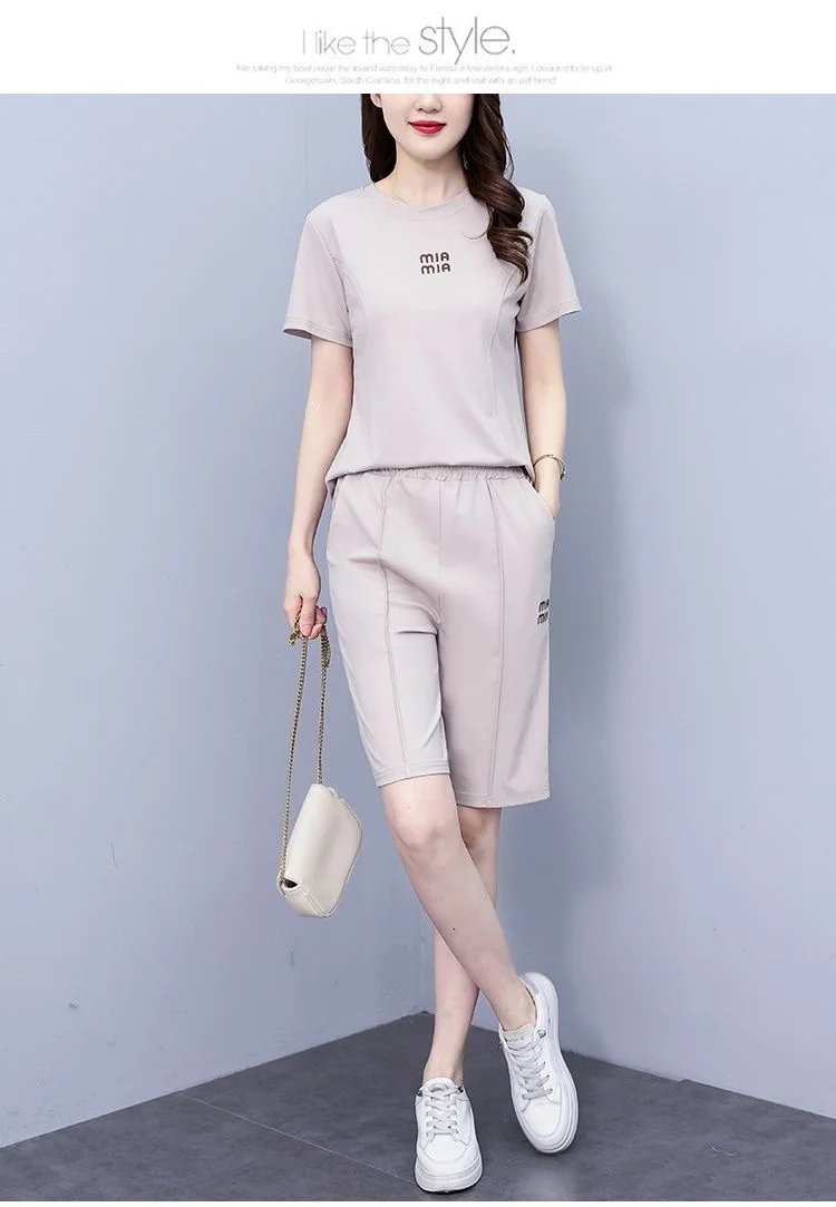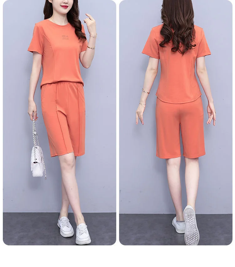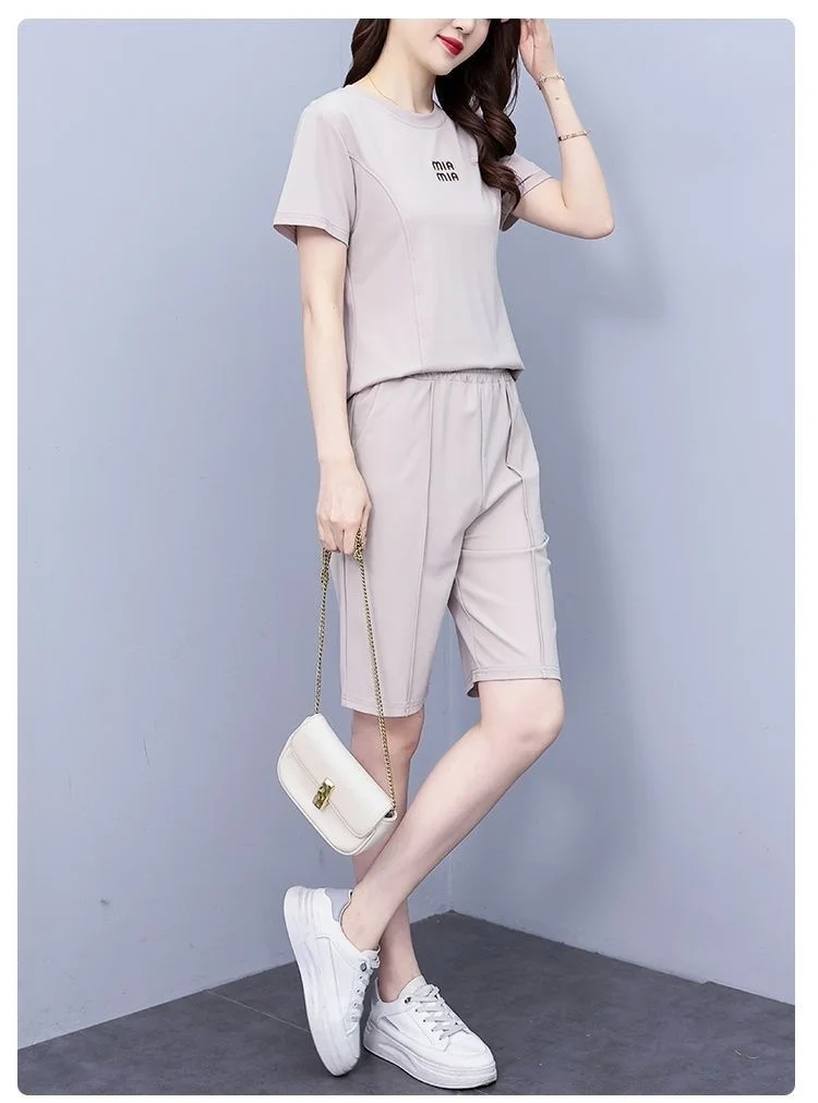 Women's Casual Suit 2024 Summer New Fashion Age Reducing Western-style Slim T-Shirt Crop Tops Knee Length Shorts 2 Two Piece Set