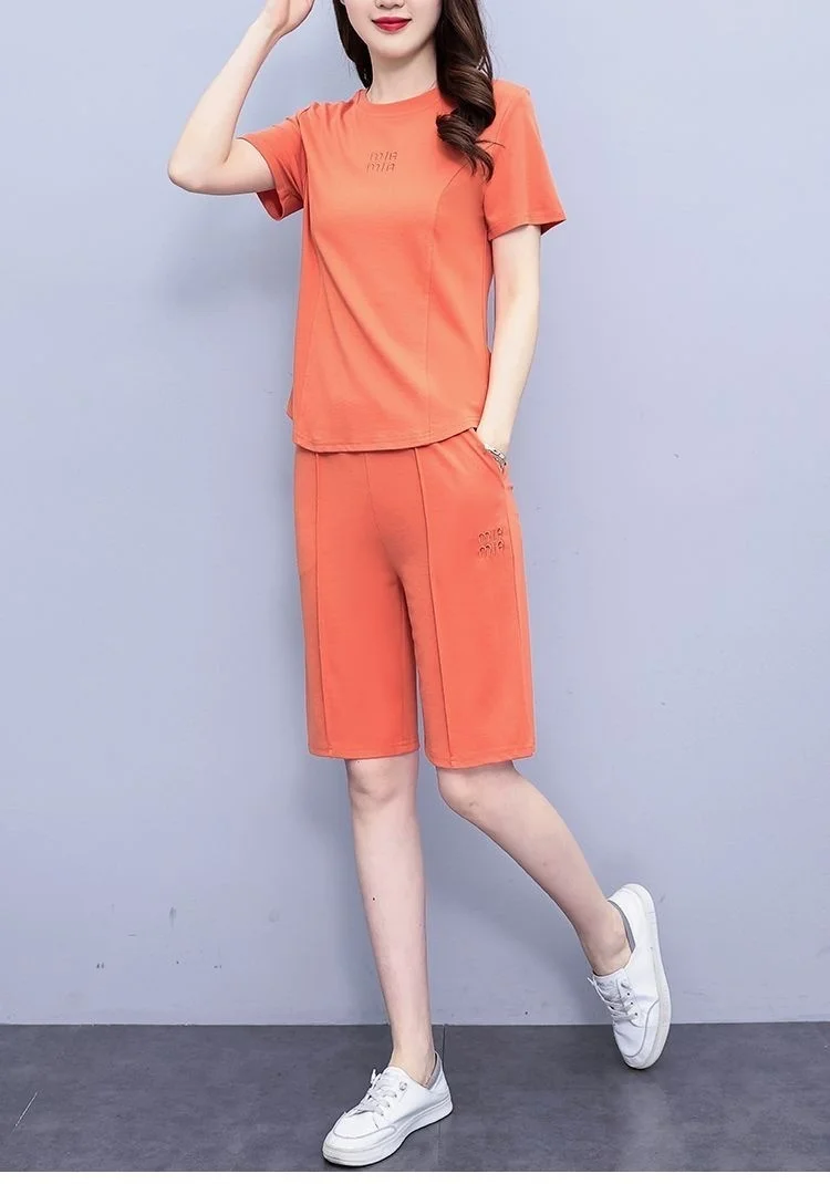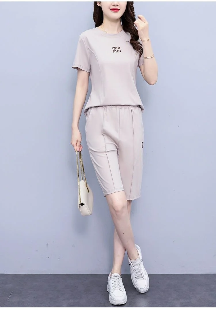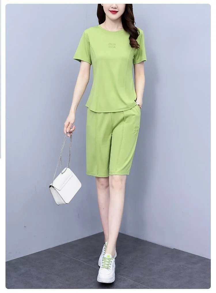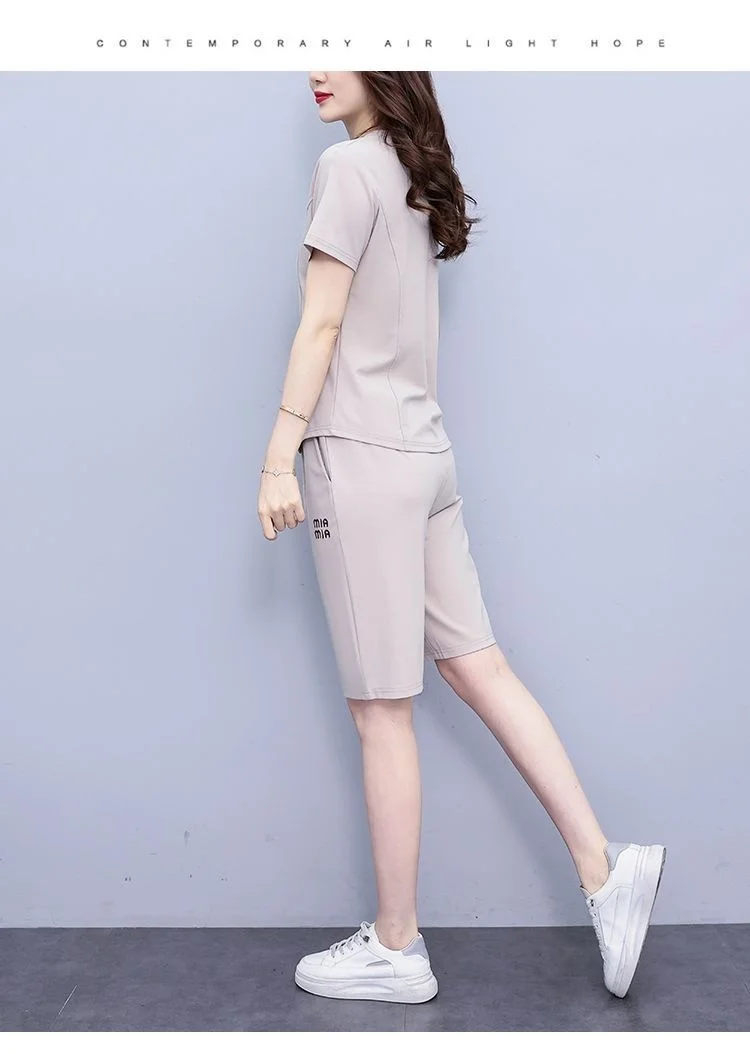 Women's Casual Suit 2024 Summer New Fashion Age Reducing Western-style Slim T-Shirt Crop Tops Knee Length Shorts 2 Two Piece Set